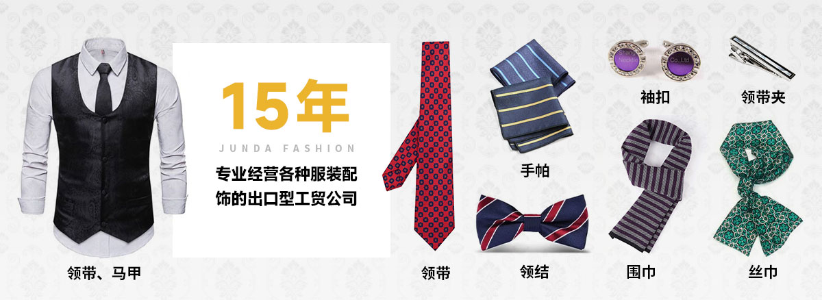 上饒市駿達(dá)服飾有限公司是一家專業(yè)經(jīng)營(yíng)各種服裝配飾的出口型工貿(mào)公司,公司多年來(lái)致力各種男女服裝國(guó)際流行配飾的開(kāi)發(fā)和生產(chǎn),主要產(chǎn)品為領(lǐng)帶、領(lǐng)結(jié)、絲巾、圍巾、手帕、馬甲、背心、箱包皮具、領(lǐng)帶夾、袖扣等,有豐富的內(nèi)外銷經(jīng)驗(yàn)及廣泛的國(guó)內(nèi)外銷售渠道,生產(chǎn)基地管理嚴(yán)格,質(zhì)量過(guò)硬,并有一批生產(chǎn)加工企業(yè)長(zhǎng)期合作